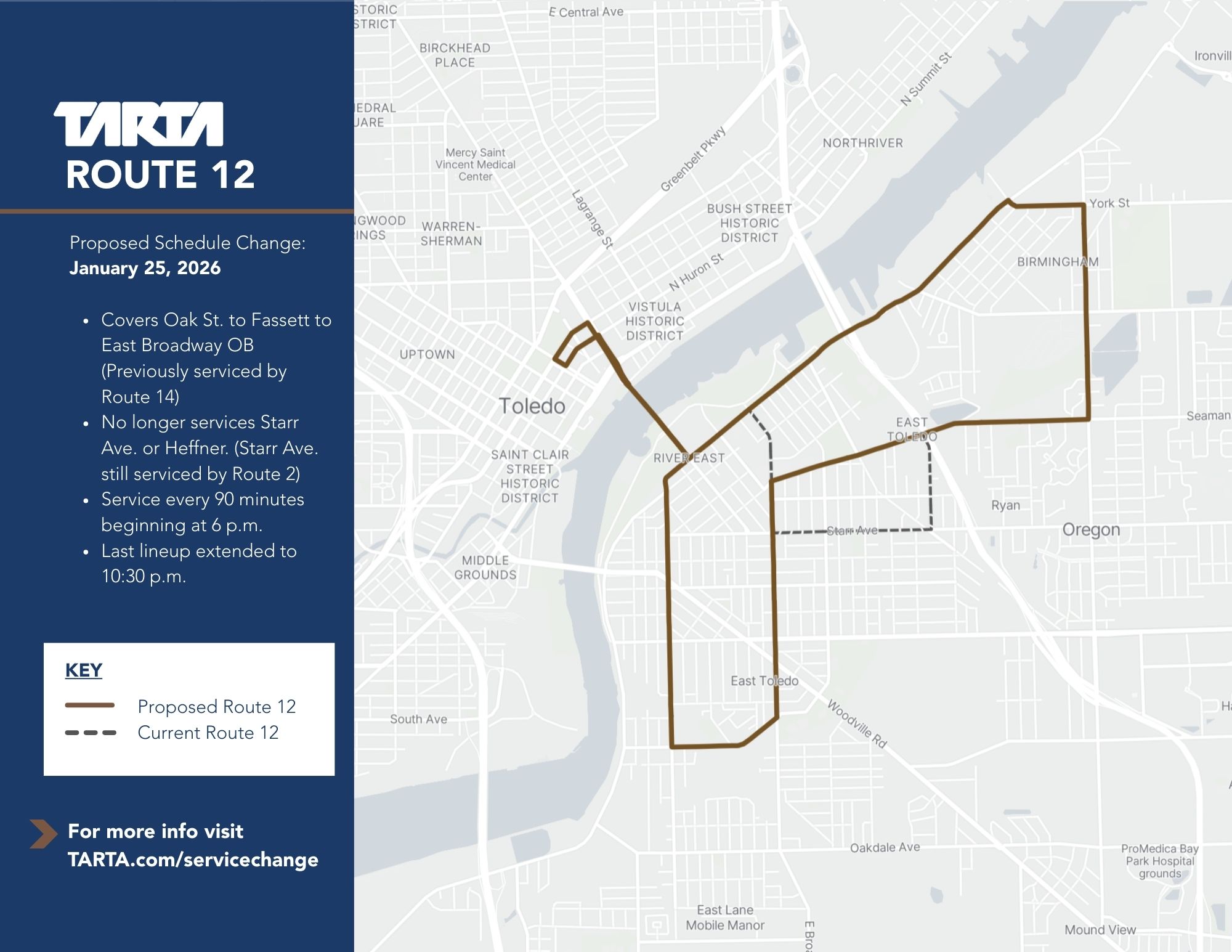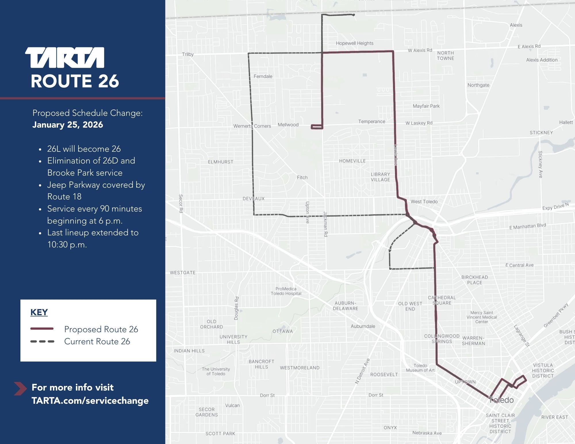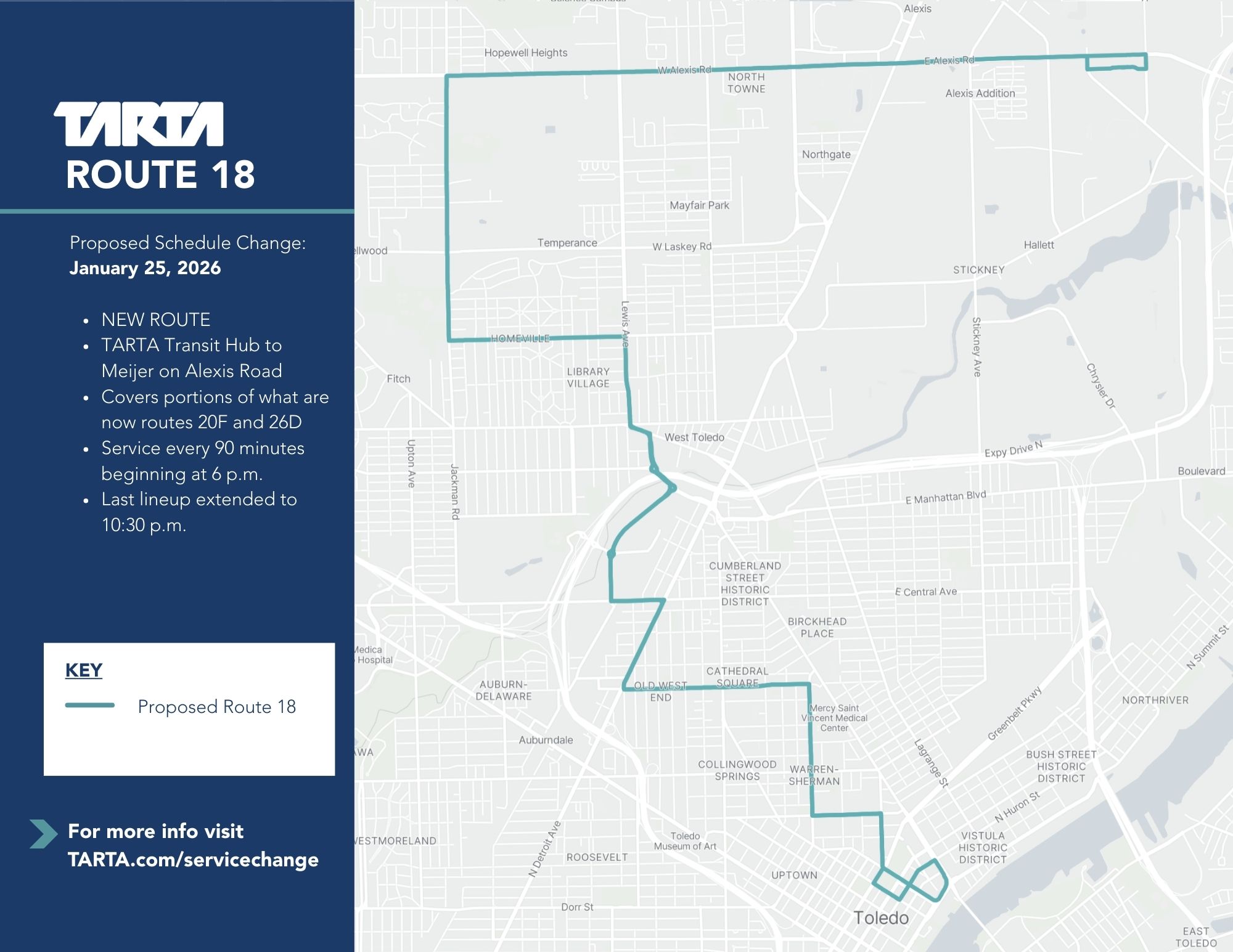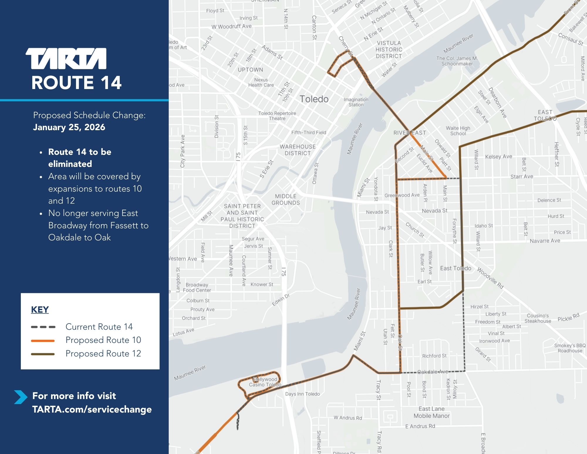 TARTA is proposing major changes to routing beginning January 25, 2026, which if approved would impact nearly every route. TARTA seeks feedback on proposed changes, which would include but would not be limited to: