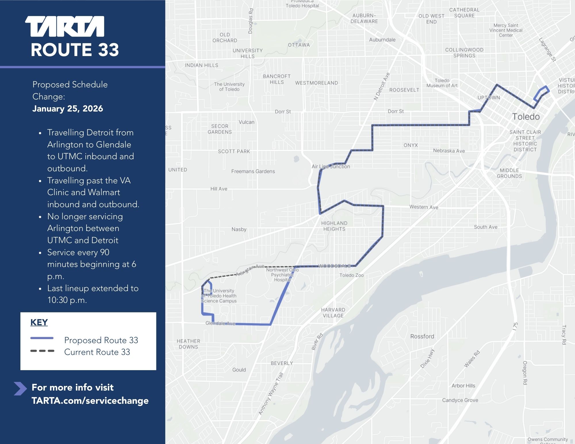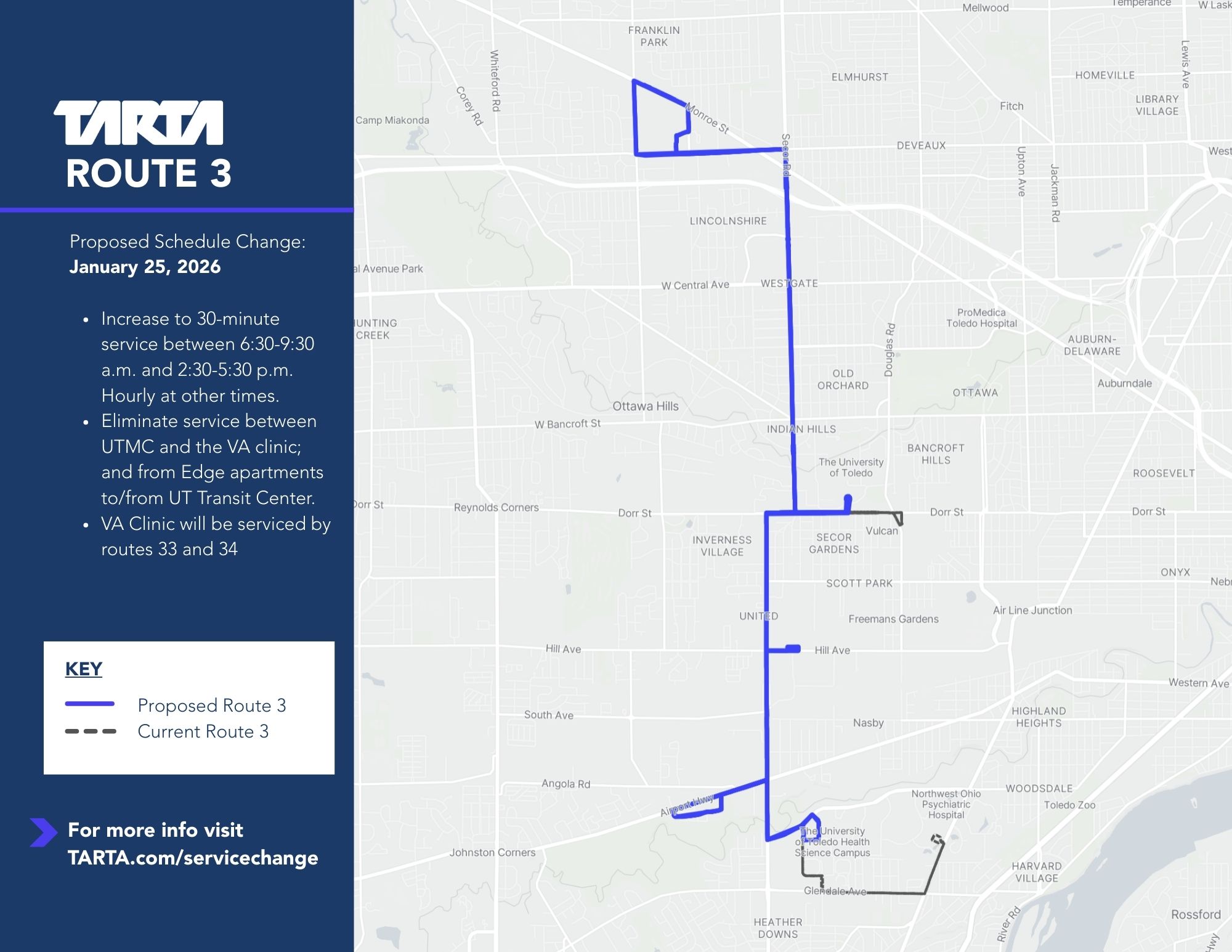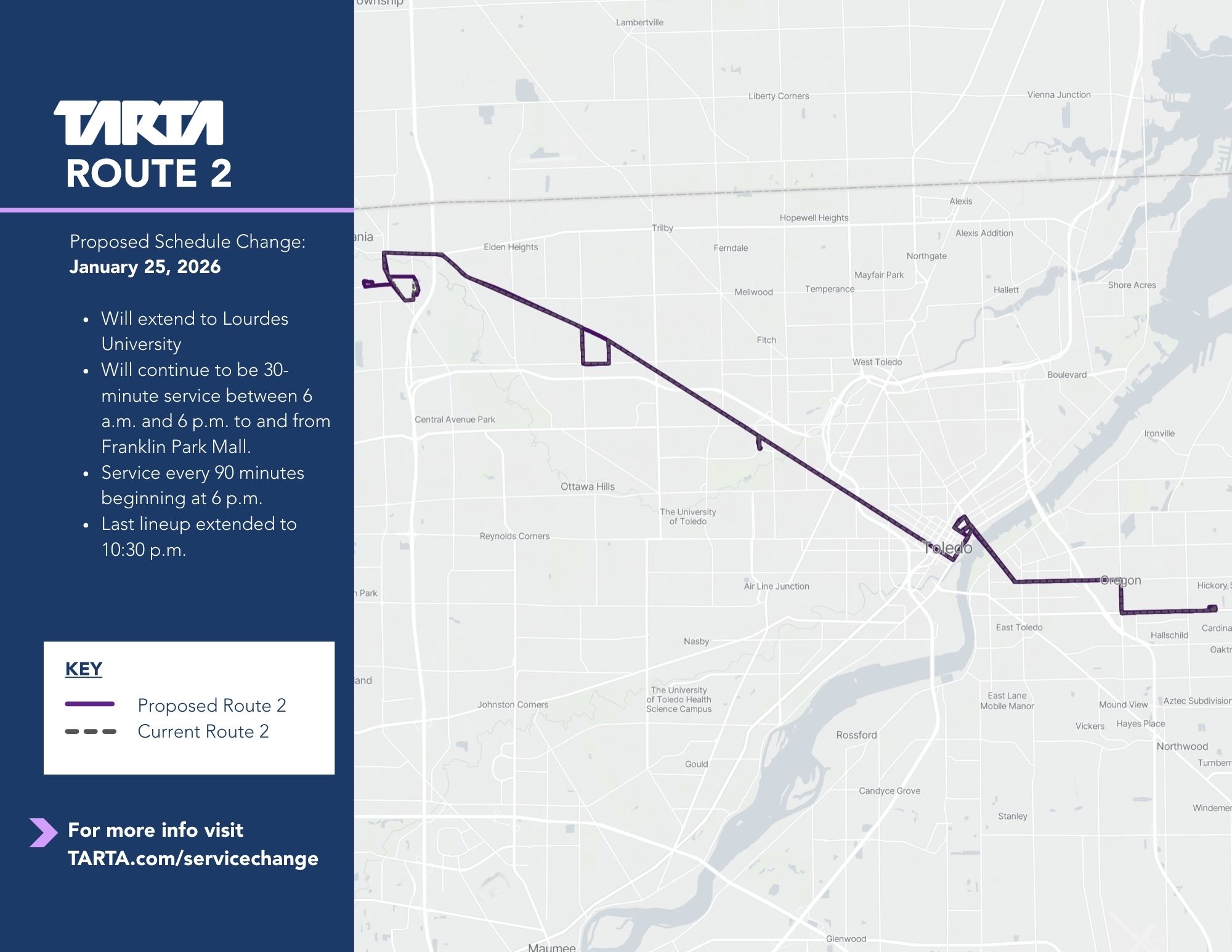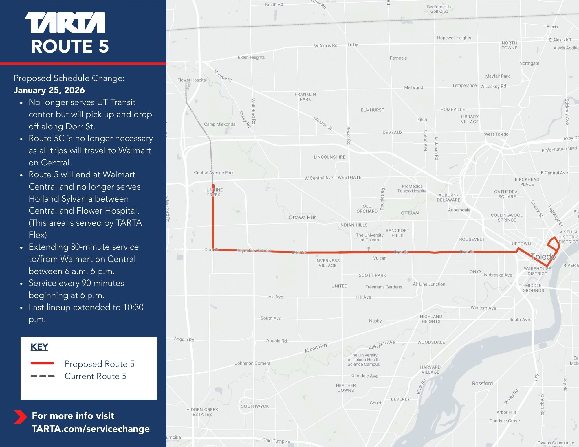 TARTA is proposing major changes to routing beginning January 25, 2026, which if approved would impact nearly every route. TARTA seeks feedback on proposed changes, which would include but would not be limited to: