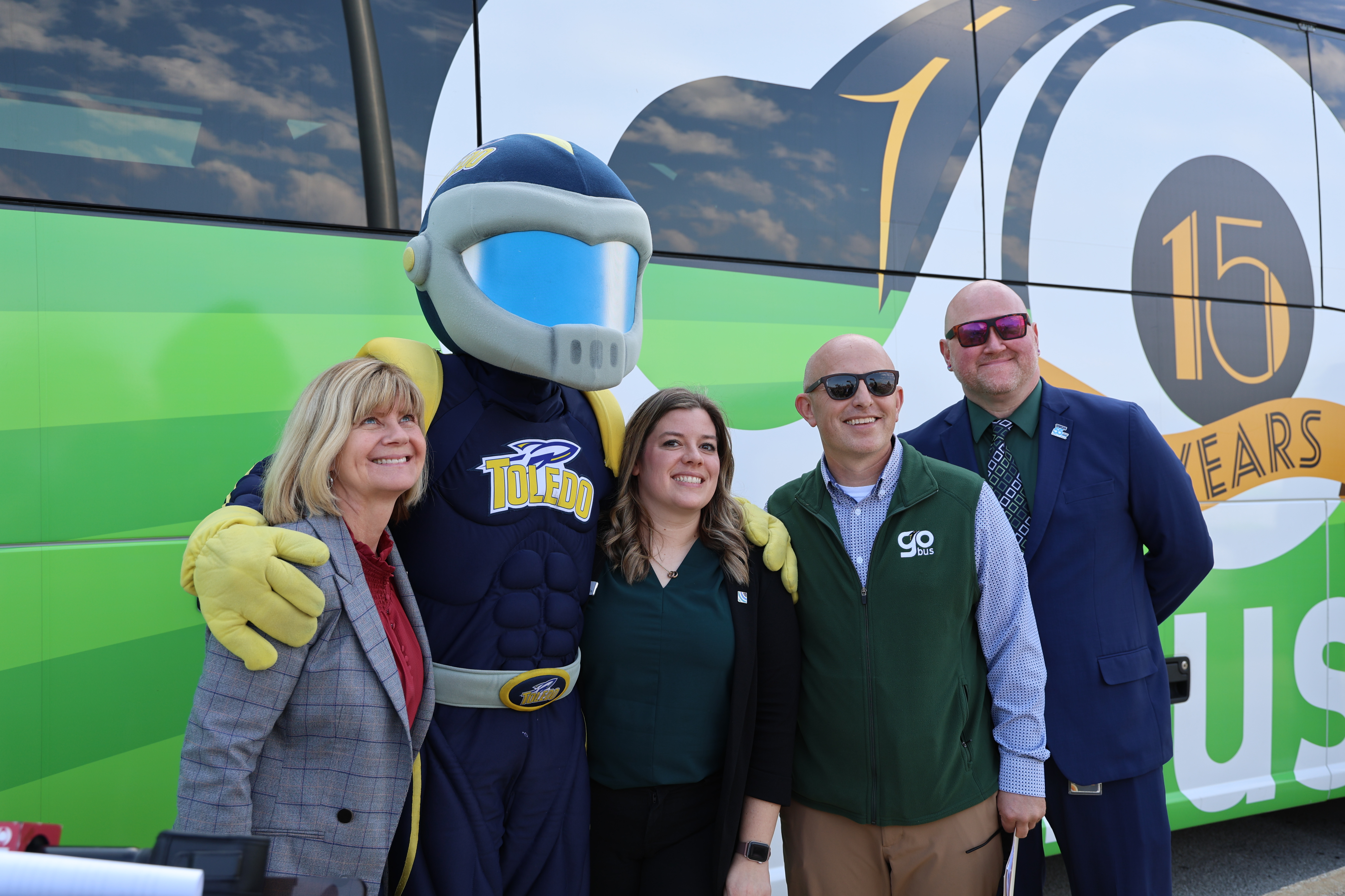 The service was welcomed Wednesday, April 22 at a press conference at the University of Toledo, with guests including TARTA CEO Laura Koprowski, ODOT administrator Chuck Dyer, Lake Erie West Regional Council Program Manager Marissa Bechstein, and University of Toledo mascot Rocky.