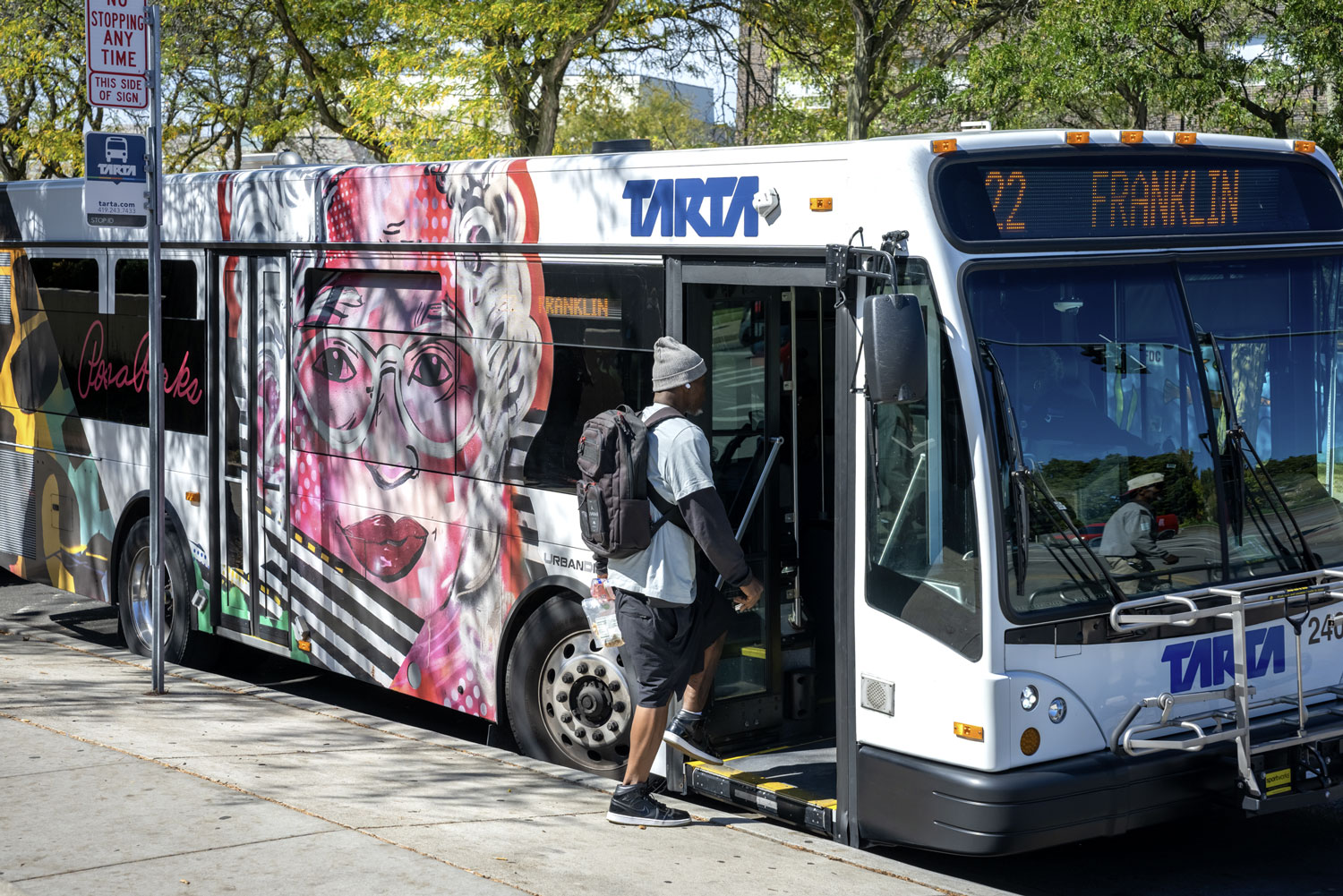 In early 2025, Toledo area artist Mercé Culp created a mural paying tribute to Rosa Parks for TARTA’s Transit Hub as part of a collaboration between TARTA and The Arts Commission. The design from that mural was converted into a bus wrap which continues to roll on TARTA fixed routes.